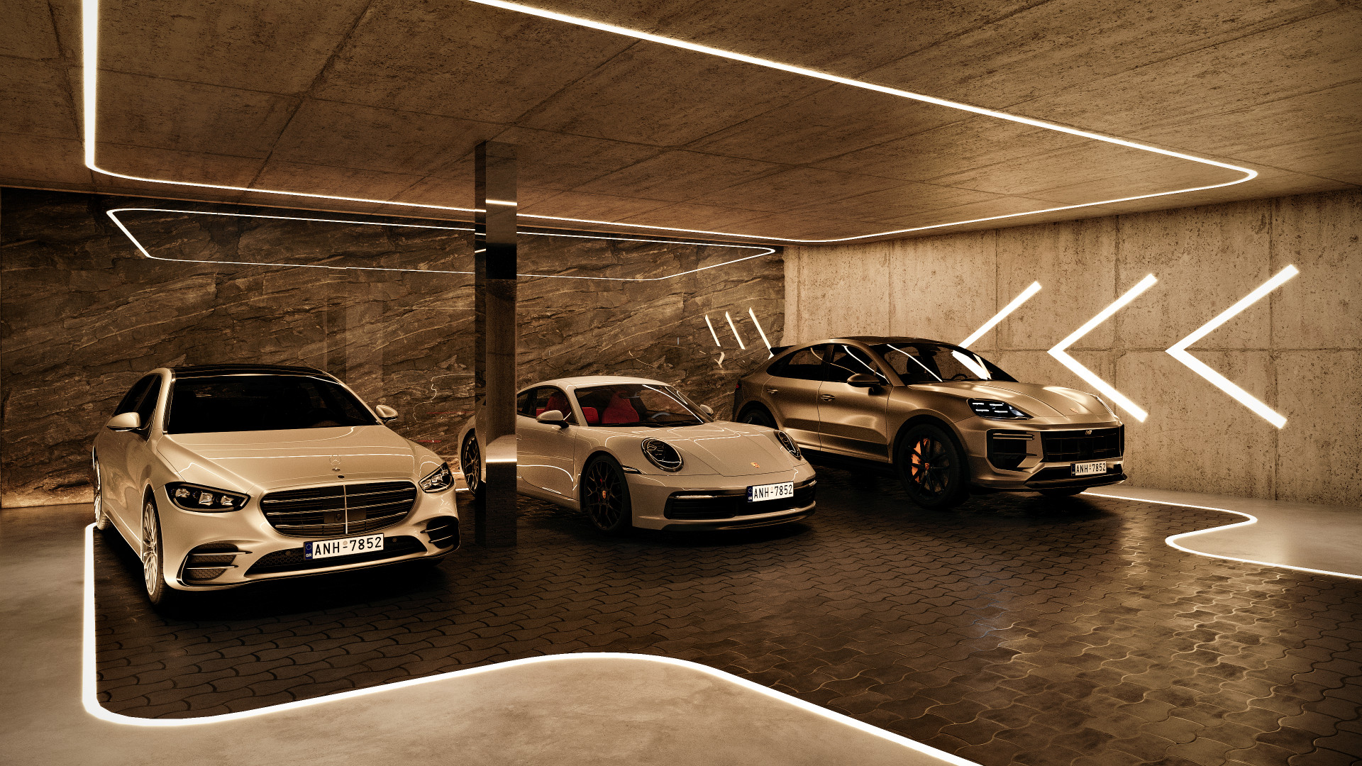 The specially designed cinema room is perfect for enjoying a movie night in your own home. Enjoy maximum comfort, privacy, and a stunning visual experience. The wine cellar is ideal for storing and presenting your favorite wines. A cozy and functional space for lovers of quality and good taste. It features a large, enclosed garage with space for three cars. Secure, elegant, and directly connected to the rest of the house.