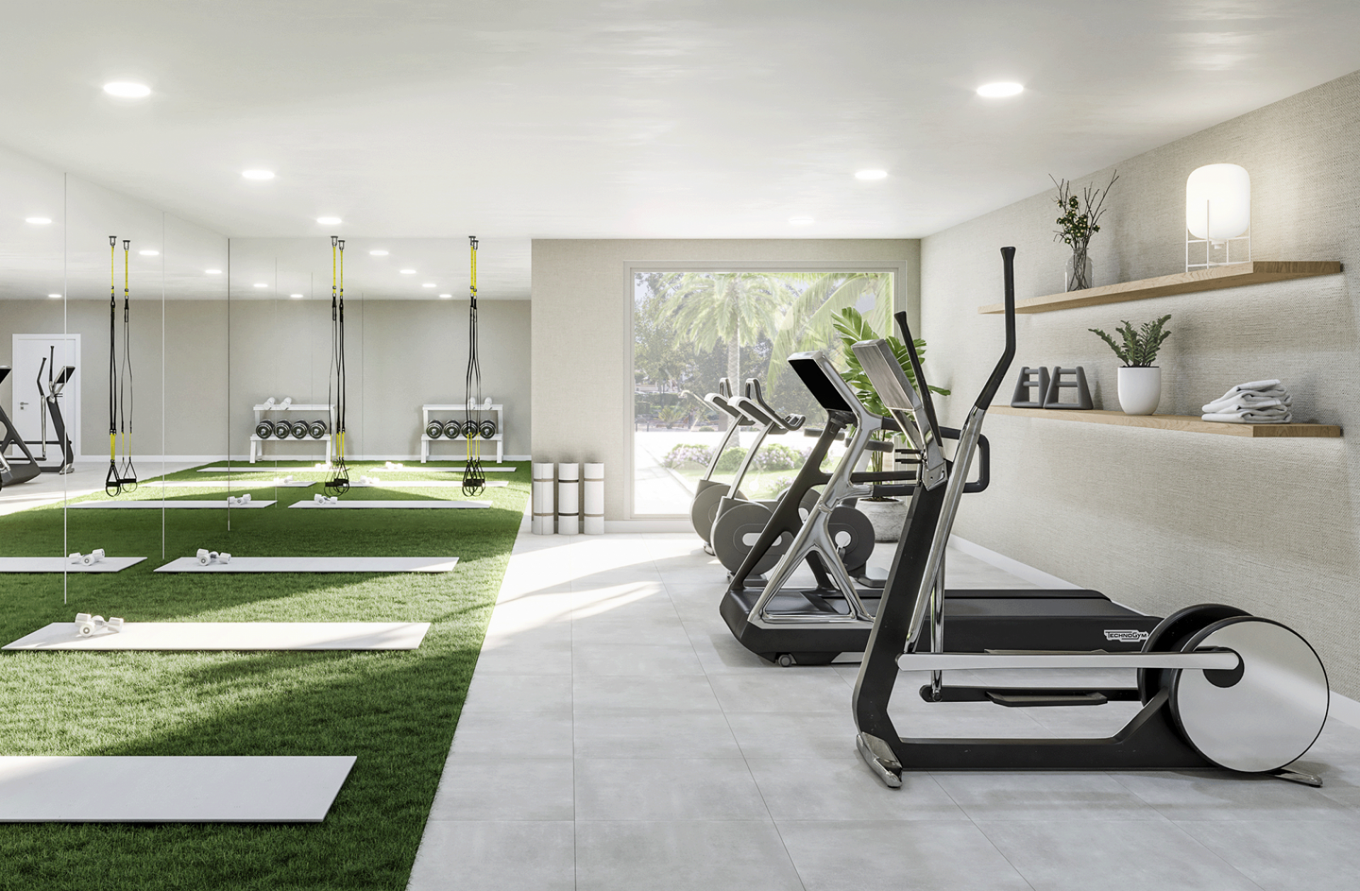 Como principal protagonista de las zonas comunes encontramos la piscina de 90 m2 con cloración salina e iluminación nocturna rodeada de un amplia solarium con cesped donde poder disfrutar de los numerosos días de sol. y acompañado de un chill out con vistas a la piscina. Además, cuenta con un gimnasio equipado en el que poder hacer ejercicio con un espacio en el exterior y un club social con vistas a la piscina para poder compartir agradables momentos con familiares y amigos.