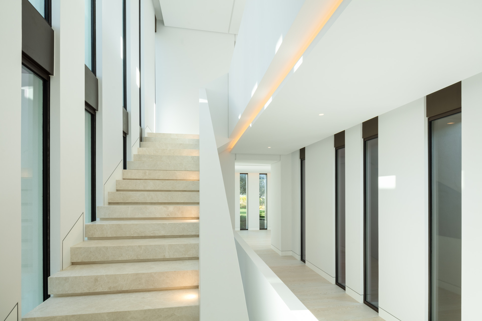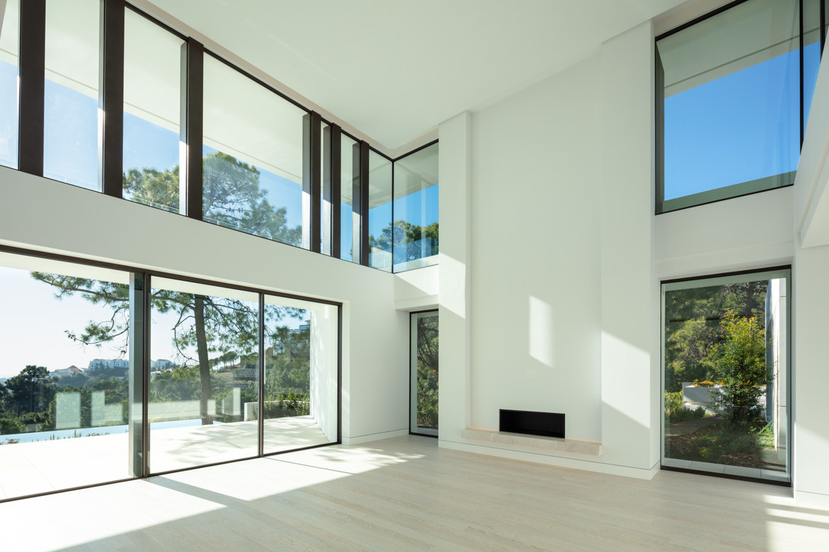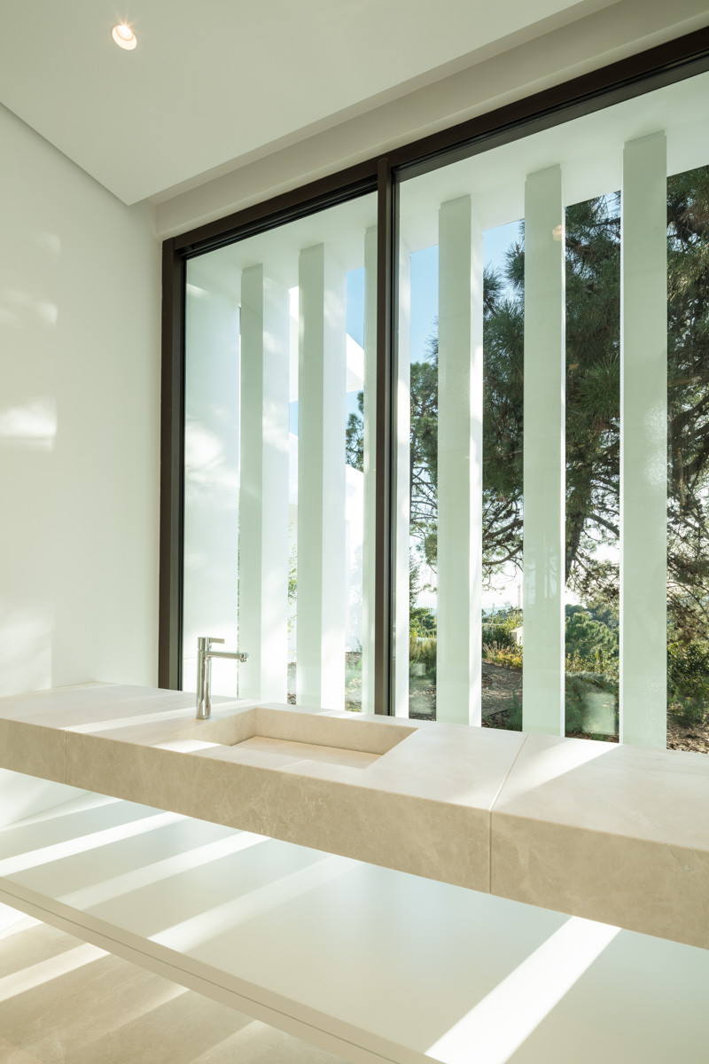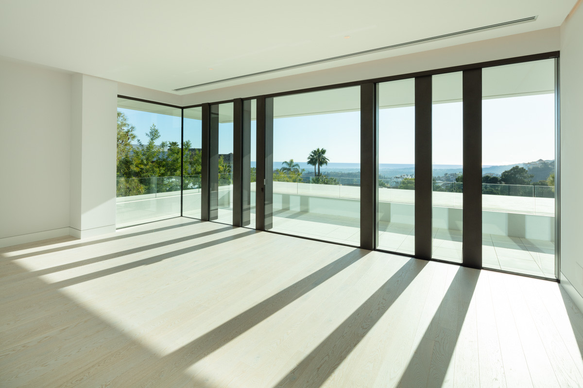 Montemayor is situated near Marbella Club Golf Resort, this property enjoys a convenient location with easy access to various services, just a 15-minute drive away. Marbella and Puerto Banús can be reached within a 15-minute drive. The gated community provides 24-hour security, ensuring a safe and secure environment. Monte Mayor balances calm living with easy access to some of the Costa del Sol’s most desirable attractions. World-class golf courses, the nearby beaches, high-end shopping, and fine dining options make it easy for residents to indulge in the best of both worlds, peaceful retreat and dynamic lifestyle choices. Positioned in a privileged viewpoint, the villa offers breathtaking panoramic views of the sea and surrounding nature. This villa perfectly balances privacy, luxury, and modern design. Spanning two thoughtfully designed levels, the villa’s architecture showcases floor-to-ceiling windows that flood the interiors with natural light while framing breathtaking vistas of the ocean and mountains. Its clean lines and open spaces create a sense of sophistication and harmony with the environment. The villa features five spacious bedrooms (plus the service one), including a luxurious master suite on the main floor, as well as a self-contained guest apartment with its own kitchen, living room, bathroom, and private bedroom, ideal for visitors seeking comfort and privacy. Indoor living spaces are designed for both relaxation and entertainment, with highlights such as a home cinema, wine cellar, gym, leisure room, and a well-equipped laundry room for added convenience. Every detail has been carefully considered to cater to modern lifestyles. Outdoor spaces elevate the villa’s appeal with an infinity pool that seems to blend seamlessly into the horizon. Multiple terraces, some shaded by pergolas, offer versatile areas for lounging and dining. A fully equipped outdoor kitchen and dining area create the perfect setting for alfresco meals, complemented by lush gardens and serene surroundings. Our exquisite interior design focuses on creating spacious environments that maximize natural light and stunning views. Large windows and open layouts seamlessly blend the beauty of the outdoors with elegant interiors. Thoughtful furniture placement enhances the sense of space while maintaining a warm atmosphere, creating a space where residents can unwind and enjoy their surroundings. This design fosters a harmonious living experience that celebrates luxury and nature